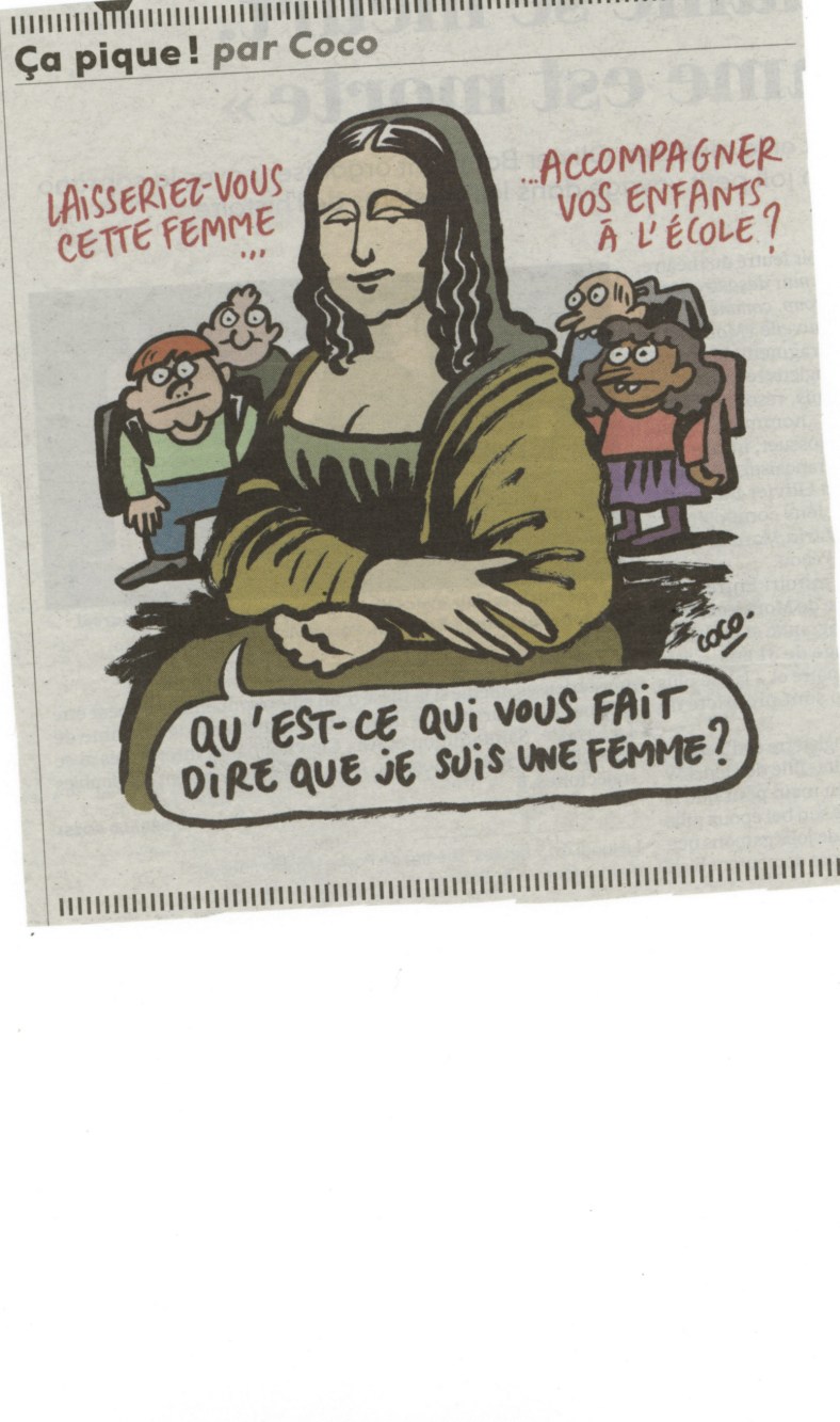 Évitons le clivage sociétal, apprécions plutôt l’humour irrévérencieux de COCO ci-dessus qui, à la manière de Marcel DUCHAMP ci-dessous, croque une Joconde voilée et androgyne qui ne manque pas de prestance.