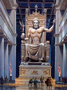 Lorsqu’on demandait à PHIDIAS quels hommes lui avaient servi de modèle pour réaliser la statue cryséléphantine (or et ivoire) de ZEUS (fils de Cronos) à OLYMPIE, l’une des sept merveilles du monde (13 m de haut) aujourd’hui disparue, il répondait: « Le Cronide dont la tête nous fait signe du haut des horizons bleus »